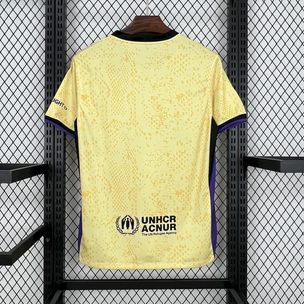 Uma homenagem inesquecível a duas lendas: Barcelona e Kobe Bryant. Esta edição especial da camisa celebra a conexão entre o basquete e o futebol, trazendo o espírito de determinação e grandeza que marcou a carreira de Kobe. Com design único em amarelo e detalhes em roxo, cores que remetem diretamente ao legado dos Lakers, a peça é um símbolo de respeito e inspiração. Mais do que um uniforme, é um tributo que une paixão esportiva e memória eterna. Um item exclusivo, feito para colecionadores e torcedores que carregam consigo a força dos verdadeiros ídolos.