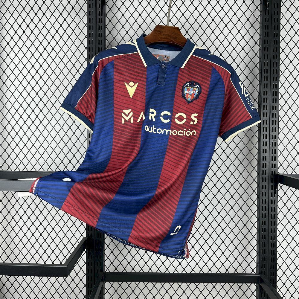 O destaque da camisa desta temporada é a homenagem ao Estádio Vallejo, que comemora seu centenário. O design inclui detalhes dourados que evocam o valor histórico daquele lendário estádio: a gola polo azul-marinho com linha dourada, o escudo do Levante UD em alta definição, a inscrição "100 ANOS – CAMPO DE VALLEJO" estampada na parte inferior frontal e traseira da camisa e uma etiqueta especial dentro da gola com o desenho do arco de entrada do estádio original.