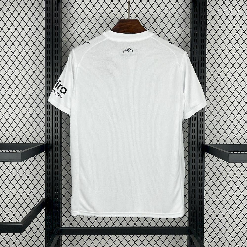 Sob o novo lema do Valencia CF, "Terra de Valentia", o uniforme reflete a determinação de uma equipe que olha para o futuro com orgulho, comprometimento e um desejo constante de melhorar. A camisa apresenta um design limpo, elegante e monocromático, com o branco como protagonista, a gola em V como elemento distintivo e o escudo proeminente, cuja técnica de execução em relevo está presente tanto na versão de competição quanto na réplica.