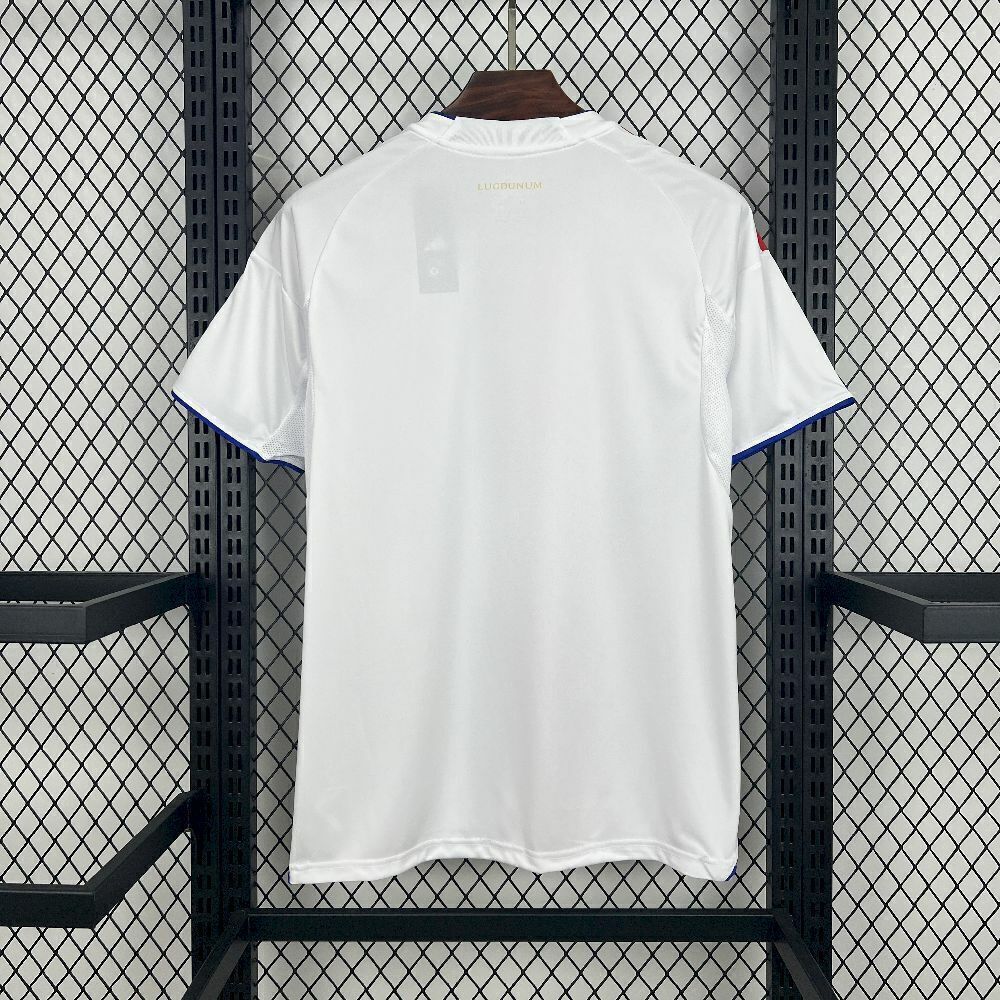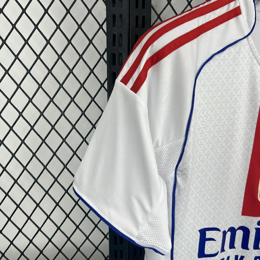 Para a temporada 2025/26, o Lyon apresenta uma camisa titular exclusiva, inspirada nas raízes ancestrais da cidade de Lyon. Com uma base branca e clean, a camisa é definida por uma marcante faixa central vermelha e azul, um símbolo icônico do clube, sobreposta a um refinado padrão de mosaico galo-romano estampado na frente. Este design é uma homenagem sutil, porém poderosa, ao legado histórico da capital da Gália. Um detalhe exclusivo "Lugdunum" na parte de trás da gola aprofunda a conexão entre a identidade do clube e a herança do Lyon. Mais do que uma camisa, é uma declaração de paixão e pertencimento, conectando um passado glorioso e um futuro ambicioso.