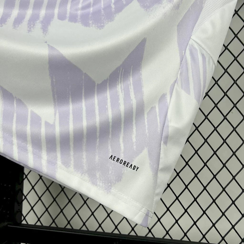 O estilo gelado do Manchester United ganha um novo visual. Não demorará muito para que os fãs percebam a influência do uniforme floco de neve do início dos anos 90 nesta camisa. As novidades, porém, são os detalhes em roxo e lilás, e o acabamento metálico que dá um brilho extra ao escudo do diabo vermelho. Esta camisa confortável utiliza o AEROREADY, que controla a umidade, para que os fãs possam manter o foco no futebol.
