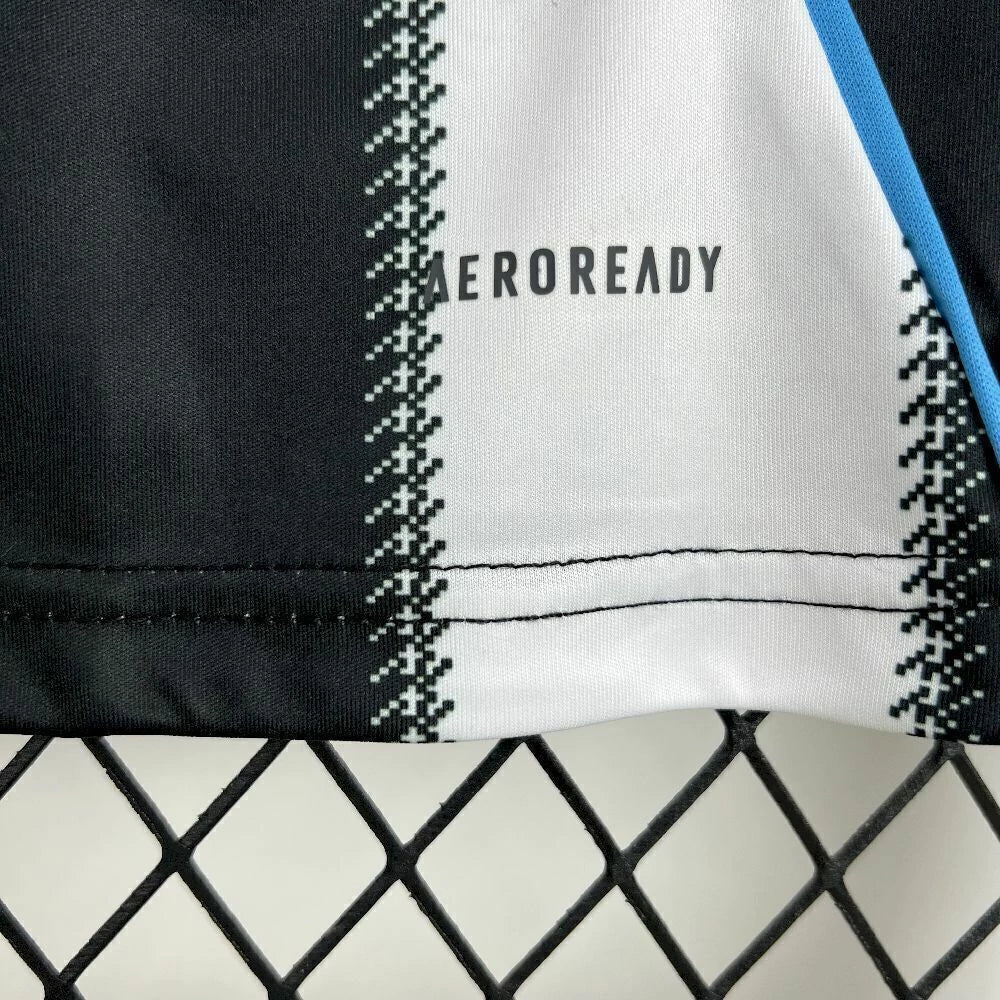 Para os orgulhosos Geordies, nascidos e adotados, a nova camisa principal do Newcastle United 25/26 reinventa nossas icônicas listras pretas e brancas com um visual ousado e enraizado na tradição. Inspirada na rica herança do Nordeste, cada listra é bordada com um padrão xadrez pastor, uma referência marcante ao histórico tartã da Nortúmbria que influenciou nosso primeiro uniforme preto e branco em 1894.