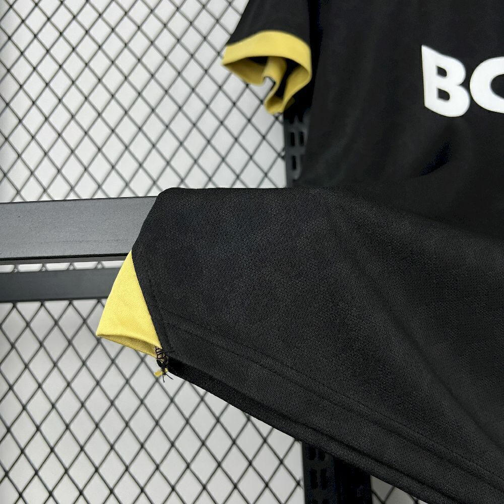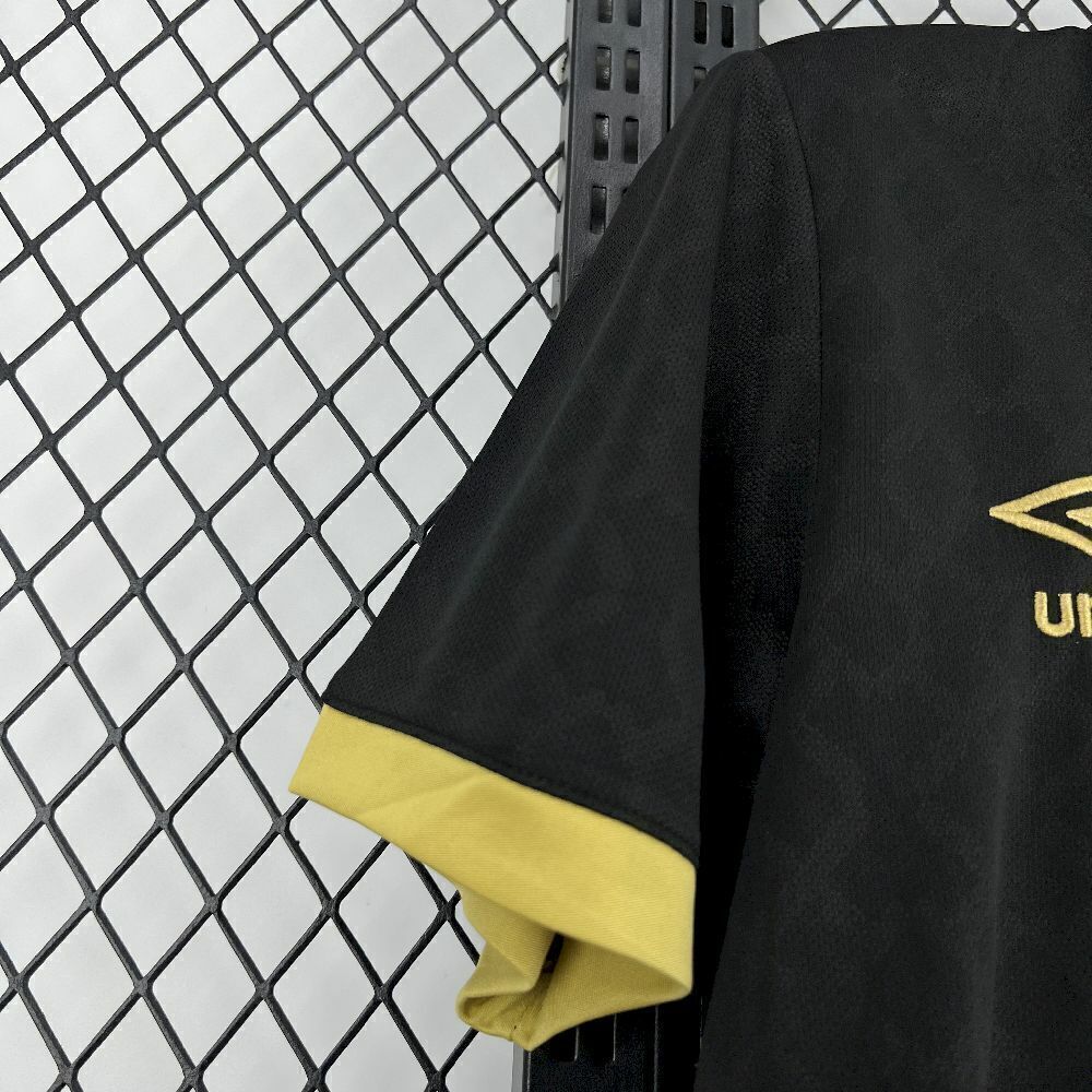 Nosso terceiro uniforme apresenta uma paleta clean de azul-marinho e dourado. O azul-marinho remete às nossas raízes na Thames Ironworks e o dourado representa o ferro dos Hammers. Confeccionado em tecido jacquard personalizado, gola dobrável e punhos com detalhes dourados, ele traz o design clássico para a era moderna. A camisa apresenta um escudo cruzado oversized dos Hammers, usado sozinho pela primeira vez desde a década de 1980.
