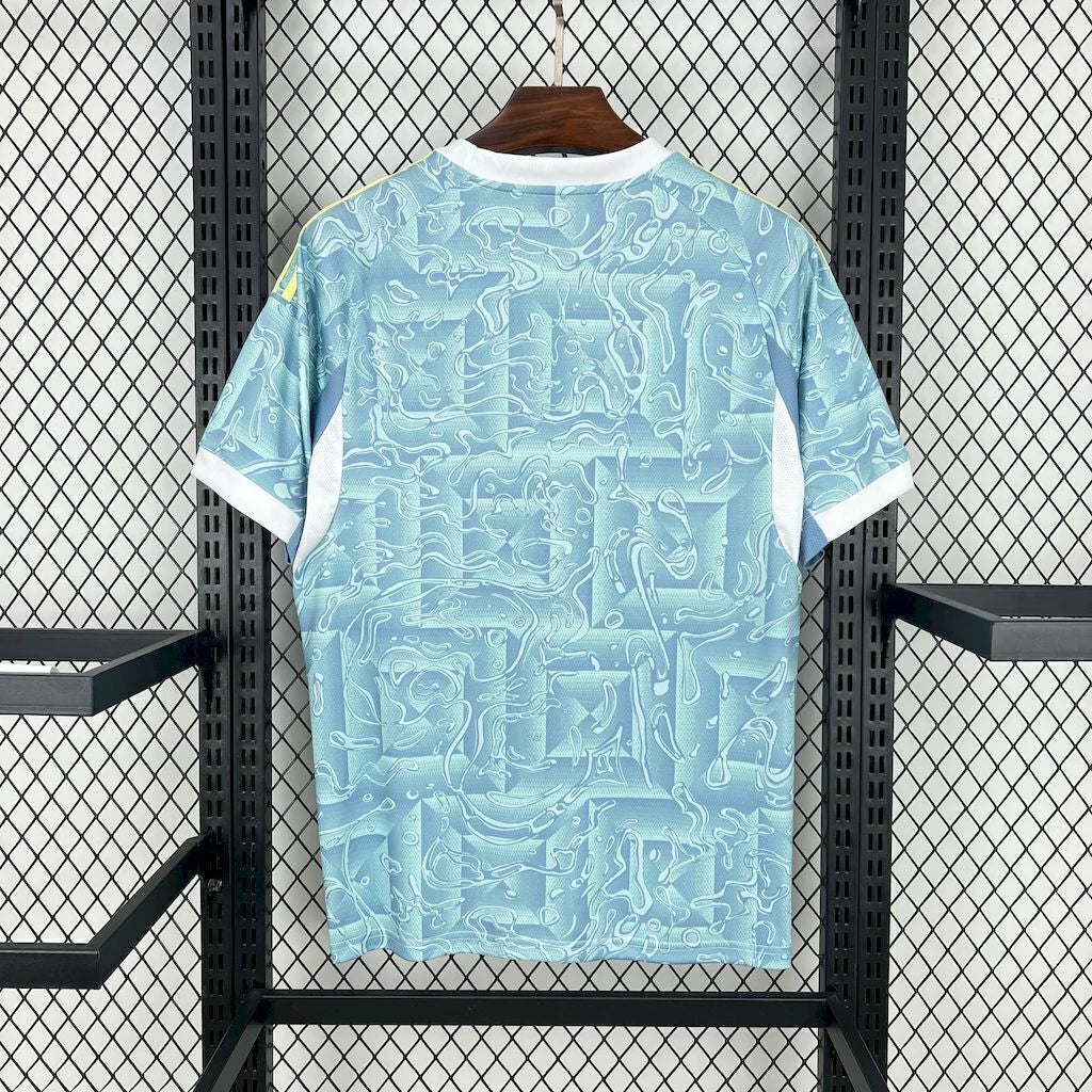 Com tons pastéis de azul e toques de amarelo e branco inspirados na bandeira da cidade de Turim, esta camisa adidas da Juventus certamente causará impacto nos dias de jogo.
